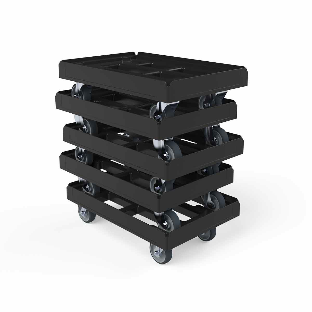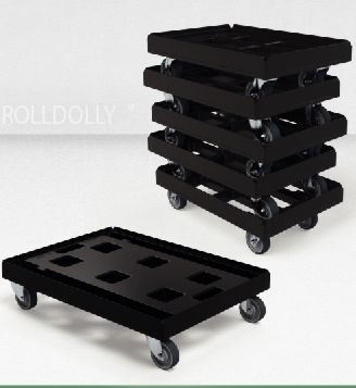 doppelten Sicherungsrand• optimale Sicherung der Kunststoffkisten durch vier Lenkrollen Lauf?äche: thermoplastisches Elastomer, Radkörper: Polypropylen, • mit Rollen ø 100 mm TPE • Kunststoffboden aus Recycling-Material• Transportroller für Euronorm-Kisten 600 x 400 mm 610 x 410 x 190 mm / innen: 602 x 402 mm Basic bis 300 kg Traglast ® Maße rolldolly•