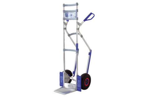 Stapelkarre mit Sicherheitshandgriffe, Schaufel Standard LxB 245x220mm, Schaufel feststehend, Luftbereifung Ø 260mm, Räder Kugelgelagert, Gesamthöhe 1300mm, Tragkraft 250 KG, Rutschkufen aus Exlan, Achsbreite 440 mm, Hersteller Fa. EXPRESSO made in Germany,
