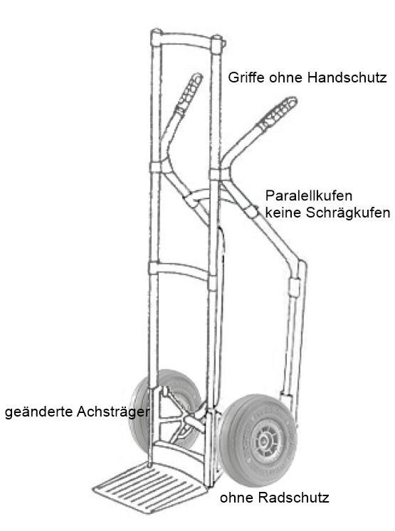 Stapelkarre OHNE Sicherheitshandgriffe, Schaufel Standard LxB 245x220mm, Schaufel feststehend, Luftbereifung Ø 260mm, Räder Kugelgelagert, ohne Radschutz, Gesamthöhe 1300mm, Tragkraft 200 KG, Paralell-Rutschkufen aus Exlan, ohne Werbeschild.....