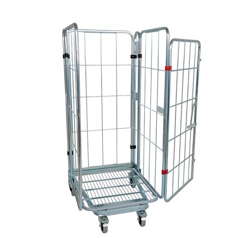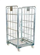 mit Rollen ø 108 mm Polyamid, 2 Lenkrollen / 2 Bockrollen Traglast: 500 Kg; Innenmaß: 655 x 740 mm, Nutzhöhe 1465 mm 2 Seitengitter aus ø 22 mm Rundrohr, Streben aus 12 x 3 mm Flacheisen 1 Rückwand, mit CT-Verschluss zum Öffnen und Schließen 1 Vorderwand, mit CT-Verschluss zum Öffnen und Schließen Boden mit Federtechnik zur Seite klappbar, nestbar für optimalen Leerguttransport Oberfläche: galvanisch blau verzinkt