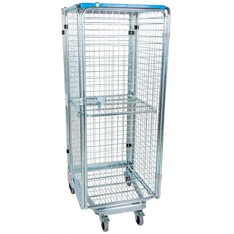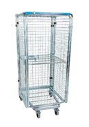 Höhe 1880 mm mit Rollen ø 125 mm PA/Elastik grau, 2 Lenkrollen mit Festst. / 2 Bockrollen Innenabmessung: 670 x 773 mm, Nutzhöhe 1615 mm Drahtausfachung: 50 x 50 x 4 mm Boden mit Federtechnik, zur Rückwand klappbar1 klappbarer Zwischenboden möglich, mittig an der Rückwand arretiert nestbar für optimalen Leerguttransport Oberfläche: galvanisch blau verzinkt
