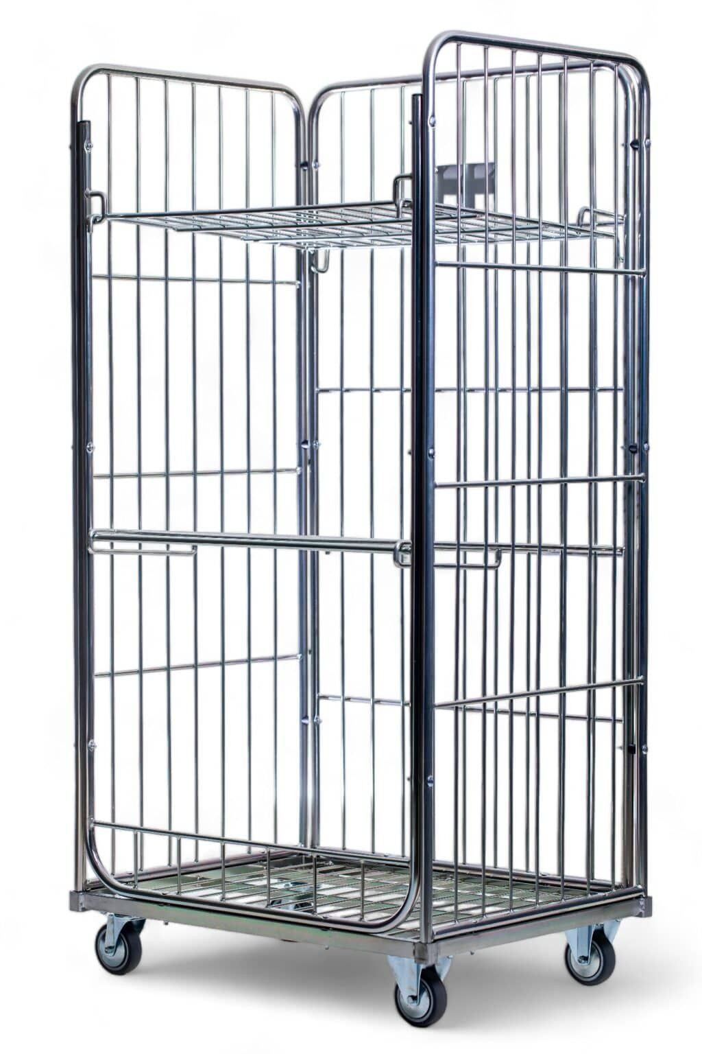Die Normtainer - Baureihe des Typ R ist aus den gleichen stabilen Profilen gefertigt wie das System G 2. Die spezielle Ausstattung liegt in den zwei abklappbaren Zwischenböden. Über die breite Frontseite wird so eine differenzierte Füllung in drei Etagen ermöglicht. So erhält der Kunde die Ware bereits vorsortiert angeliefert. Nach dem Entleeren der frischen Ware im Normtainer, werden die Zwischenböden abgeklappt und dann wird die gebrauchte Ware einfach in den Wagen hineingeworfen und kann so problemlos zurück befördert werden. Für die gängigen LKW- / Transporter - Formate bieten wir drei Größen. incl. Gitterpalette, 2 Lenk+2 Bockrollen, 2 klappbare Gitterzwischenböden und Beschriftungstafel