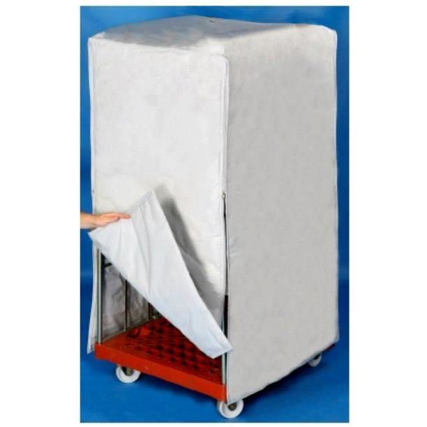 Schutzhaube für Rollbehälter aus PE-Bändchengewebe weiß Maße ca. 730 x 820 x 1460 mm Beide Kopfseiten mit 2 genähten Reißverschlüssen komplett zu öffnen,dadurch kann der Rollbehälter trotz übergel...