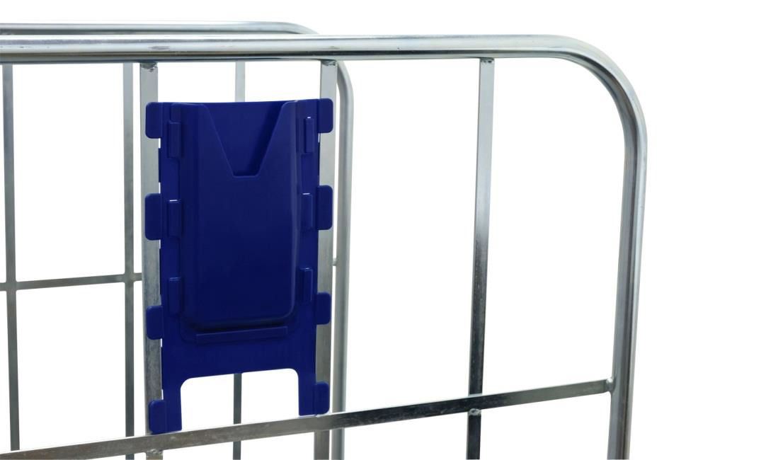 Kartentasche für Seitengitter Rollbehälter aus Kunststoff PP - RAL 5010 dunkelblau Abmessung: 270 x 160 mm, für Standardseitengitter Die Befestigung erfolgt durch Klemmung in dem Seitengitter Ve...