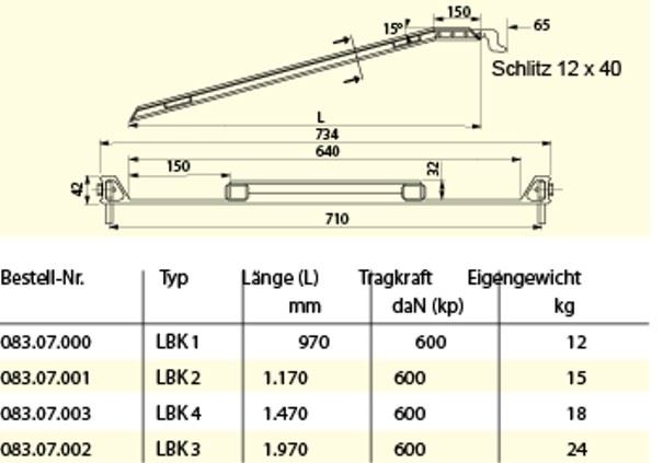 Diese Verladeschienen werden eingesetzt zum Überbrücken von Bürgersteigen und dem seitlichen Be- und Entladen an Rampen. Sie sind ein wertvolles Hilfsmittel im rationellen Güterumschlag.