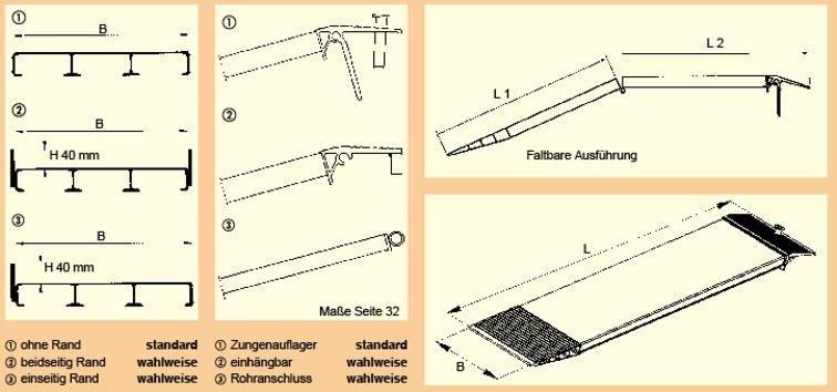 Transportgeräte mit kleinen Rädern, Handhubwagen mit geringen Bodenfreiheiten oder luftbereifte Sackkarren, mit dieser Art von Transportmitteln wird ein Großteil der täglich stattfindenden leichteren Verladevorgänge bestritten. Die gelochte, rutschsichere Fahrfläche eignet sich bestens für die Verladung mit den oben aufgeführten Geräten. Ausführungen mit Schutzrand oder faltbar sind ebenfalls lieferbar.