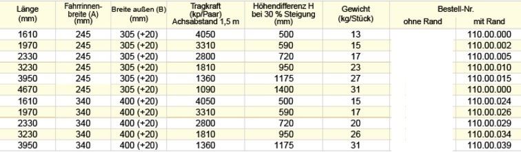 TYP AVS 110 bis 4050kp/Paar mit RAND Diese Rampen sind für die Verladung von mittelschweren Fahrzeugen wie Baumaschinen, Gartengeräten oder Rasentraktoren, die mit Luftbereifung oder Gummiketten a...