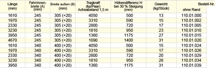 TYP AVS 110 bis 4050kp/Paar ohne RAND Diese Rampen sind für die Verladung von mittelschweren Fahrzeugen wie Baumaschinen, Gartengeräten oder Rasentraktoren, die mit Luftbereifung oder Gummiketten ...