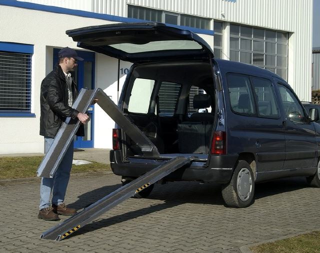 Die ALTEC-Auffahrschienen RAS-W aus Aluminium sind ein sicheres und schnelles Hilfsmittel für Betreuer. Die Schienen laufen kugelgelagert auf einer rostfreien Stahlwelle, die fest im Fahrzeug montiert wird. Während der Fahrt sind die Schienen zusammen-geklappt und werden senkrecht von Halterungen gesichert. Die Fahrfläche ist mit einem rutschsicheren Korundbelag beschichtet.