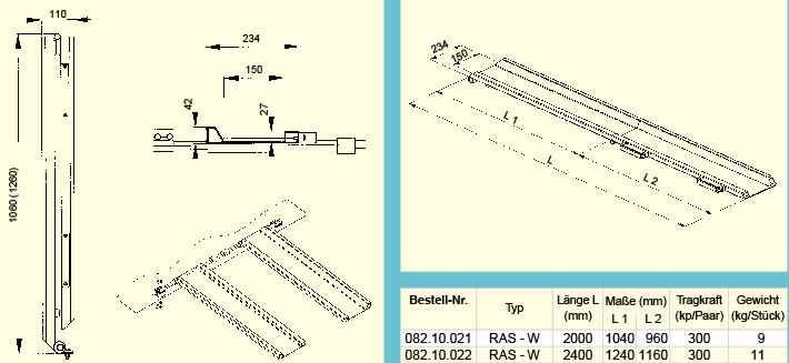 Die faltbaren Aluminium-Verladeschienen Typ RAS-W sind aus einer hochfesten Aluminium Legierung hergestellt. Die Konstruktion des Profils garantiert sicheres Befahren. Zusätzliche Sicherheit bietet...