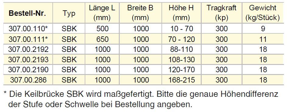 Gute Dienste leistet die ALTEC-Keilbrücke SB-K zum Überfahren von Stufen und Schwellen. Wie alle ALTEC-Produkte hat die SB-K eine rutschsichere Fahrfläche, ist witterungsbeständig und wartungsfrei....