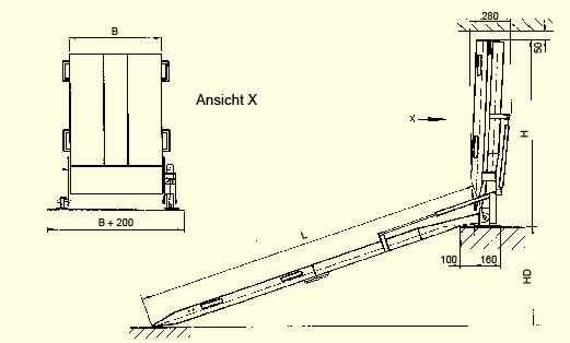 Eine logische Weiterentwicklung der RLK ist die RRD, drehbar, für den kombinierten Einsatz. Bei der Verladung von schweren Lasten z.B. mit E-Mobilen oder ähnlichem, wird die Rampe ganz normal einge...
