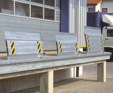 Sie ist seitlich verschiebbar und steht bei Nichtgebrauch senkrecht an der Rampenkante.