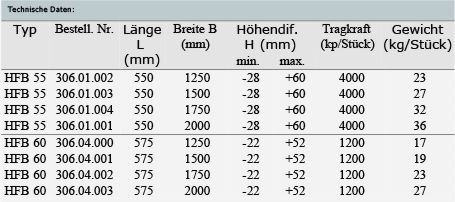 Für den universellen Einsatz dienen die mobilen Brücken HFB 55 und HFB 60. Mit nur einem Anschlag versehen, wo zwischen LKW und Rampe nur geringe oder keine Höhenunterschiede bestehen. Sie sind seh...