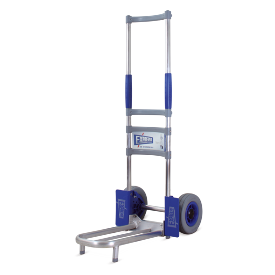Klappkarre, Rohrschaufel LxB 425x220mm, Schaufel klappbar, Vollgummibereifung 200 mm Ø, Räder Kugelgelagert, Gesamthöhe 1100mm geklappt 730 mm, Tragkraft 75 KG, Achsbreite 405 mm,