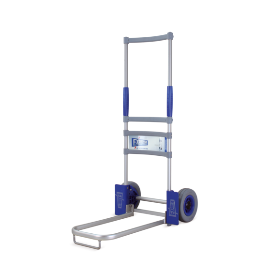 Klappkarre, Rohrschaufel LxB 520x280mm, Schaufel klappbar, Vollgummibereifung 200 mm Ø, Räder Kugelgelagert, Gesamthöhe 1100mm geklappt 730 mm, Tragkraft 100 KG, Achsbreite 475 mm,