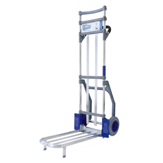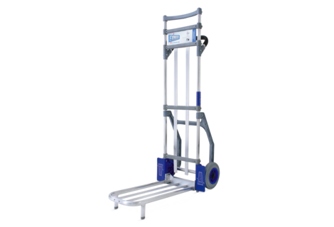Paket-Servicekarre aus Aluminium, Rohrschaufel LxB 600 x 280 mm, Schaufel klappbar, Vollgummiraäder Antistatik 200mm Ø, Räder Kugelgelagert, Tragkraft 150 KG, Gesamthöhe 1300 mm, Achsbreite 475 ...