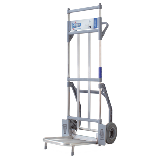 Post-Paketkarre aus Aluminium, Rohrschaufel LxB 430x350 mm, Schaufel klappbar, Vollgummiraäder Antistatik 200mm Ø, Räder Kugelgelagert, Tragkraft 125 KG, Gesamthöhe 1300 mm, Achsbreite 530 mm, ...