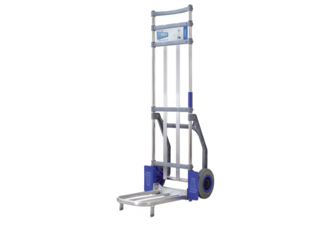 Post-Paketkarre aus Aluminium, Rohrschaufel LxB 425x280 mm, Schaufel klappbar, Vollgummiraäder Antistatik 200mm Ø, Räder Kugelgelagert, Tragkraft 150 KG, Gesamthöhe 1300 mm, Achsbreite 470 mm, ...