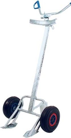 Fasskarre 400 kg Stahl feuerverzinkt, Räder wahlweise mit Vollgummi- oder Luftbereifung, Kugelgelagert, Gesamthöhe 1530 mm, Schaufelgröße/abstand 280mm, Achsbreite 620 mm