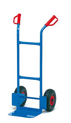 Stahlrohrkarren 200 kg, Höhe 1150 mm Handliche Stahlrohrkarren mit Stahlblechschaufeln, stabile Schweißkonstruktion, pulverbeschichtet, nur blau, RAL 5007. Sicherheitsgriffe, Räder wahlweise mit Vollgummi- oder Luftbereifung, auf Kunststoff-Felgen, Naben mit Rollenlagerung. Zerlegte Anlieferung.
