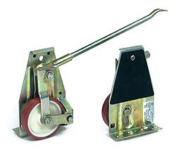 Hubrollen Für den Transport von schweren Schränken und dergleichen, Stahlblechgestell gelb verzinkt, Anlagefläche mit Gummibelag, Rad mit Polyurethan-Bereifung. Handhabung:_Last mit Hebelstange anheben, Klaue der Hubrolle unterschieben, anheben der Last durch Umlegen des Exzenterhebels mit der Hebelstange. Auf der Gegenseite ebenso mit der 2. Hubrolle verfahren und die Last ist verfahrbar.