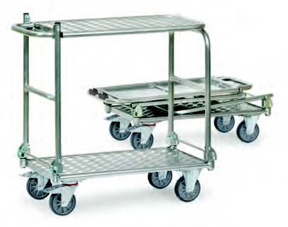 2 Lenk- und 2 Bockrollen, Vollgummi-Bereifung, Naben mit Rollenlager. Feststeller an den Lenkrollen, gemäß der Europäischen Norm EN 1757-3 (Sicherheit von Plattformwagen). Tragkraft obere Ladefläche 80 kg. Bereifung bei 1180 ist 125 mm Ø, bei 1181 ist 160 mm Ø Bereifung